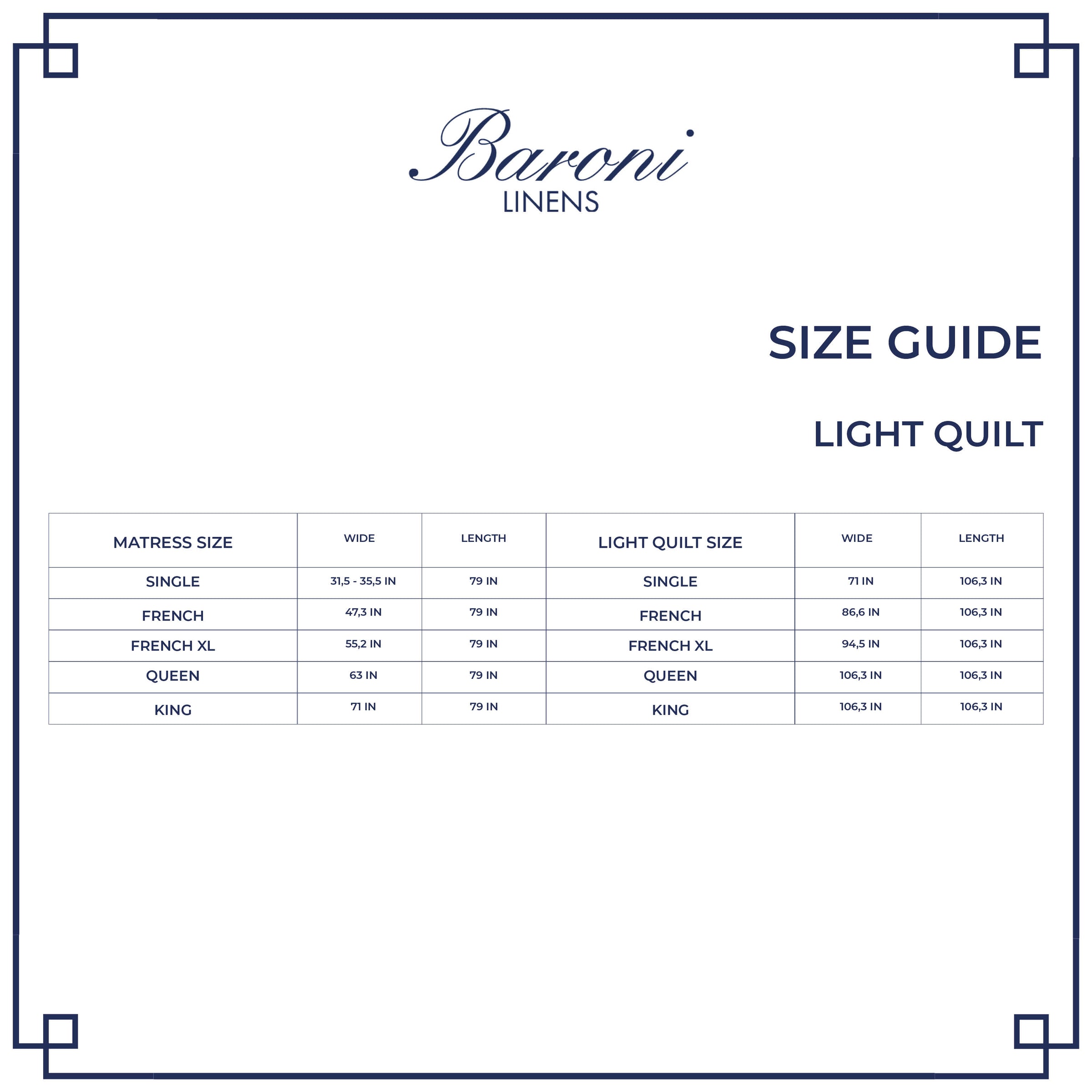 Here you can find all the guides to sizes and measures to choose all your favorite items: from bed set, bath set, dressing gowns and woman sleepwear.